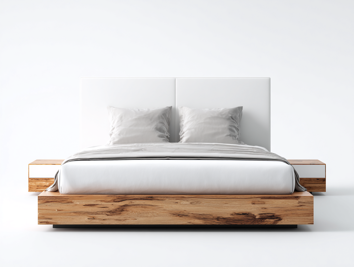 Der stabile Rahmen besteht aus Holz in Naturfarbe und sorgt für eine langlebige und belastbare Konstruktion. Das Kopfteil ist mit weißem Stoff gepolstert und bietet eine angenehme Oberfläche zum Anlehnen. Die sorgfältige Verarbeitung unterstreicht die hochwertige Optik und sorgt für eine stabile Gesamtstruktur.