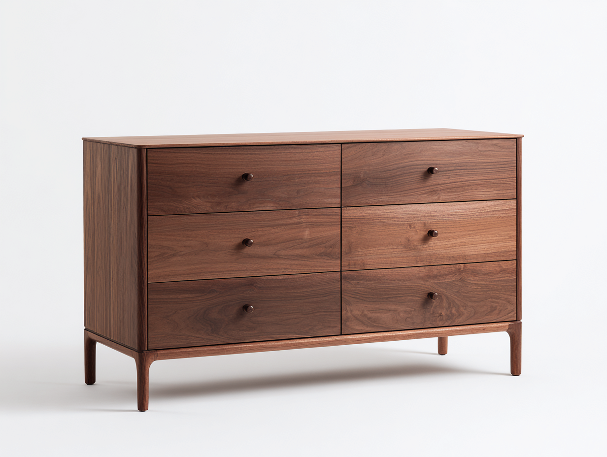 Diese Kommode mit Schubladen bietet eine praktische und stilvolle Aufbewahrungslösung für das Schlafzimmer. Das klare Design und die warme Holzoptik schaffen eine ruhige und natürliche Atmosphäre im Raum. Durch die ausgewogenen Proportionen lässt sich die Kommode harmonisch in verschiedene Schlafzimmermöbel integrieren und unterstützt eine übersichtliche Organisation von Kleidung und Alltagsgegenständen.